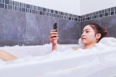 Zdjęcie "Kobieta, mycie nóg z gąbką w wanna w łazience" może być wykorzystywane do celów osobistych i komercyjnych zgodnie z warunkami zakupionej licencji Royalty-free. Obraz jest dostępny do pobrania w jakości wysokiej rozdzielczości do 5760x3840.
