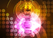 Okrągły świecące elementy na ciemnym miejscu streszczenie tło