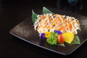 dania kuchni japońskiej. Tempura. głęboko smażone mieszanka warzyw na tle