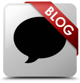 Blog (ikona rozmowy) żółty przycisk kwadratowy czerwoną wstążką w kukurydzy