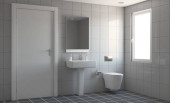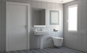 Zdjęcie "Widok wewnątrz nowoczesna łazienka czarno-białe" może być wykorzystywane do celów osobistych i komercyjnych zgodnie z warunkami zakupionej licencji Royalty-free. Obraz jest dostępny do pobrania w jakości wysokiej rozdzielczości do 5760x3840.
