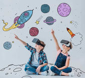 Dzieci za pomocą wirtualnej rzeczywistości zestawy słuchawkowe