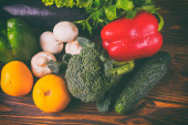 Zdjęcie "Inne organiczne warzywa na tle drewnianych. Jeść zdrowe" może być wykorzystywane do celów osobistych i komercyjnych zgodnie z warunkami zakupionej licencji Royalty-free. Obraz jest dostępny do pobrania w jakości wysokiej rozdzielczości do 5760x3840.