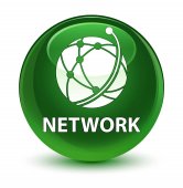 Błyszczący fioletowy Network (globalna sieć ikona) okrągły przycisk