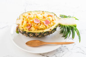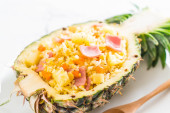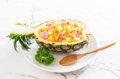 Zdjęcie "ananas smażony ryż z szynką" może być wykorzystywane do celów osobistych i komercyjnych zgodnie z warunkami zakupionej licencji Royalty-free. Obraz jest dostępny do pobrania w jakości wysokiej rozdzielczości do 5760x3840.