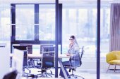 Portret odnoszącej sukcesy przedsiębiorczyni Przedsiębiorca w biurze Busy startup