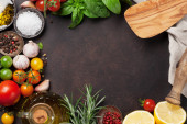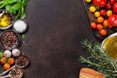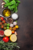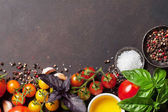 Pomidory, bazylia, oliwa z oliwek i przyprawy