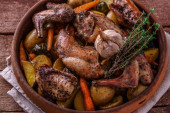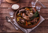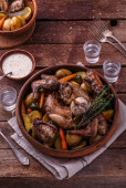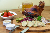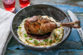 Kolacja z nogi indyka pieczone z sosem żurawinowym na seler puree