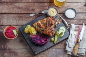 Pieczone nogi indyka z sosem żurawinowym na seler puree, rustykalny styl