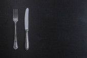 Sztućce widelec i nóż na Czarna tablica tło widok z góry widok z góry szablonu menu
