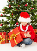 portret zaskoczony dziewczyny z jej prezent na Boże Narodzenie
