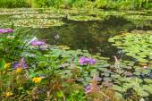 Staw, drzewa i Grzybień w francuski ogród botaniczny