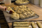Ciepłe bułeczki w kuchni do gotowania