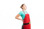 Pokojówka Gospodyni lub noszenie czerwony fartuch gospodyni