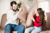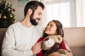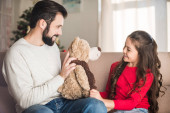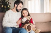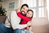 Zdjęcie "Ojciec córkę tulenie, siedząc na kanapie w domu" może być wykorzystywane do celów osobistych i komercyjnych zgodnie z warunkami zakupionej licencji Royalty-free. Obraz jest dostępny do pobrania w jakości wysokiej rozdzielczości do 5760x3840.