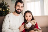 Zdjęcie "uśmiechnięty ojciec córkę tulenie z misiem" może być wykorzystywane do celów osobistych i komercyjnych zgodnie z warunkami zakupionej licencji Royalty-free. Obraz jest dostępny do pobrania w jakości wysokiej rozdzielczości do 5760x3840.
