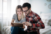 Zdjęcie "Ojciec i córka siedzi na kanapie i oglądać coś na tablecie " może być wykorzystywane do celów osobistych i komercyjnych zgodnie z warunkami zakupionej licencji Royalty-free. Obraz jest dostępny do pobrania w jakości wysokiej rozdzielczości do 5760x3840.