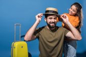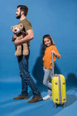 Ojciec i córka z paszportów i bilety będzie podróżować na niebiesko