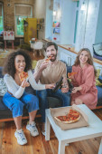 grupie wielokulturowej nastolatków podekscytowany pizza