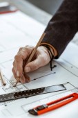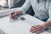 Architekt działający na blueprint.engineer inspective w miejscu pracy