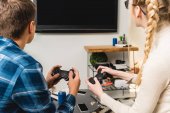 Chłopcy gry wideo przy użyciu telewizora z płaskim ekranem