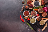 Zdjęcie "Różnych przypraw, ziół i korzeni widok z góry. " może być wykorzystywane do celów osobistych i komercyjnych zgodnie z warunkami zakupionej licencji Royalty-free. Obraz jest dostępny do pobrania w jakości wysokiej rozdzielczości do 5760x3840.
