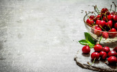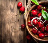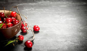 Cherry Red w Pucharze i metalowe narzędzia dla wiśni i czereśni.