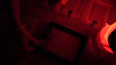 Zdjęcie "Ciemnym pokoju pod photo laboratorium. Tace z odczynnikami do drukowania ręcznie. Ciemni druku proces fotograf za pomocą powiększalnik do produkcji fotograficzne wydruki. Praca w czerwony ciemny pokój." może być wykorzystywane do celów osobistych i komercyjnych zgodnie z warunkami zakupionej licencji Royalty-free. Obraz jest dostępny do pobrania w jakości wysokiej rozdzielczości do 5760x3840.