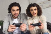 Zdjęcie "zbliżenie Młoda para gry z pada w domu" może być wykorzystywane do celów osobistych i komercyjnych zgodnie z warunkami zakupionej licencji Royalty-free. Obraz jest dostępny do pobrania w jakości wysokiej rozdzielczości do 5760x3840.