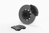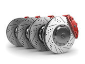 Demontaż tarczy hamulcowej z czerwony zacisk z samochód wyścigowy