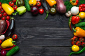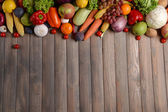 Kompozycja różnych owoców i warzyw na podłoże drewniane