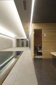 Wnętrz, pokój dzienny z basenem