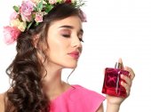 Zdjęcie "Piękna młoda kobieta z butelki perfum kwiatowy na kolor tła, zbliżenie" może być wykorzystywane do celów osobistych i komercyjnych zgodnie z warunkami zakupionej licencji Royalty-free. Obraz jest dostępny do pobrania w jakości wysokiej rozdzielczości do 5760x3840.