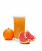 pyszne Mandaryn sok szkło i mandaryńskim obok niego na białym tle