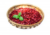Czerwonej fasoli na Puchar rattan na tle czerwonej fasoli