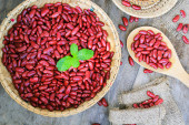 Zdjęcie "Czerwonej fasoli na Puchar rattan na tle czerwonej fasoli" może być wykorzystywane do celów osobistych i komercyjnych zgodnie z warunkami zakupionej licencji Royalty-free. Obraz jest dostępny do pobrania w jakości wysokiej rozdzielczości do 5760x3840.
