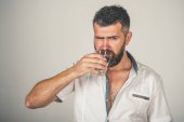 Zdjęcie "Człowiek z długą brodą przytrzymaj szkło wodne na niebieskim tle." może być wykorzystywane do celów osobistych i komercyjnych zgodnie z warunkami zakupionej licencji Royalty-free. Obraz jest dostępny do pobrania w jakości wysokiej rozdzielczości do 5760x3840.
