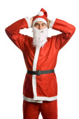 zdesperowany Boże Narodzenie santa claus, na białym tle.