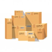 Kupa kartonowych pudełek z zapieczętowanymi towarami. Płaski styl wektor ilustracji izolowane na białym tle