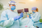 Zdjęcie "Przy użyciu szczypiec chirurgicznych usunąć rozkładających się zębów dentysta. Nowoczesna Klinika stomatologiczna" może być wykorzystywane do celów osobistych i komercyjnych zgodnie z warunkami zakupionej licencji Royalty-free. Obraz jest dostępny do pobrania w jakości wysokiej rozdzielczości do 5760x3840.