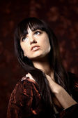 kobieta uroda długie brązowe włosy - pozowanie Studio