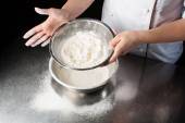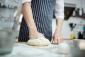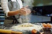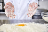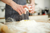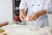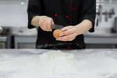 Szef kuchni, Dokonywanie ciasta z mąki i surowe jaja na stole