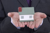 Mały dom i monety, koncepcja, izolowana na białym tle