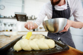 Zdjęcie "Szef kuchni, łamanie surowe jaja do miski, podczas przygotowywania ciasta" może być wykorzystywane do celów osobistych i komercyjnych zgodnie z warunkami zakupionej licencji Royalty-free. Obraz jest dostępny do pobrania w jakości wysokiej rozdzielczości do 5760x3840.