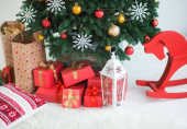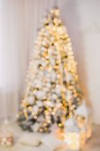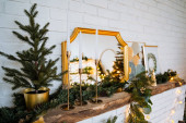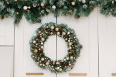 okrągłe eleganckie Boże Narodzenie wieniec wiszące na ścianie biały cegła