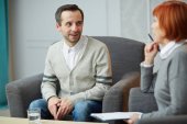 Psychiatra wizyty niespokojny mężczyzna w średnim wieku
