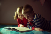 Zdjęcie "Pretty little girl czytania książki w jej kryjówki z flashli" może być wykorzystywane do celów osobistych i komercyjnych zgodnie z warunkami zakupionej licencji Royalty-free. Obraz jest dostępny do pobrania w jakości wysokiej rozdzielczości do 5760x3840.