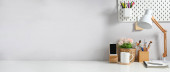 Ujęcie tło pracy architektów w nowoczesne biuro z modelu Dom na biurko, Lampa metal, plany i dostarcza przeciwko tablica