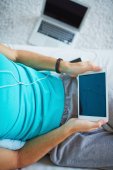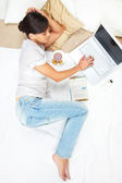 Dziewczyna z smartphone i latop wyszukiwanie w sieci