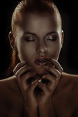 Młoda dziewczyna z zamkniętymi oczami i piękny makijaż